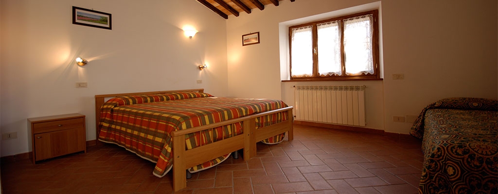 Le camere da letto sono impreziosite da travi in legno a vista sul soffitto, che conferiscono un tocco di ricercatezza tipico delle dimore di una volta della Maremma Toscana.